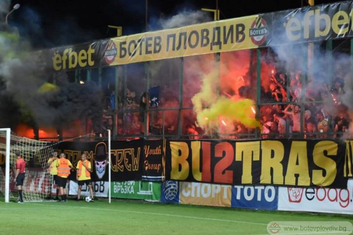 Ай мангали всичкото мангал в сектора. Жълто-черно Столюпинове пее Канари-мангали напред да разбием българите от Локомотив Пловдив