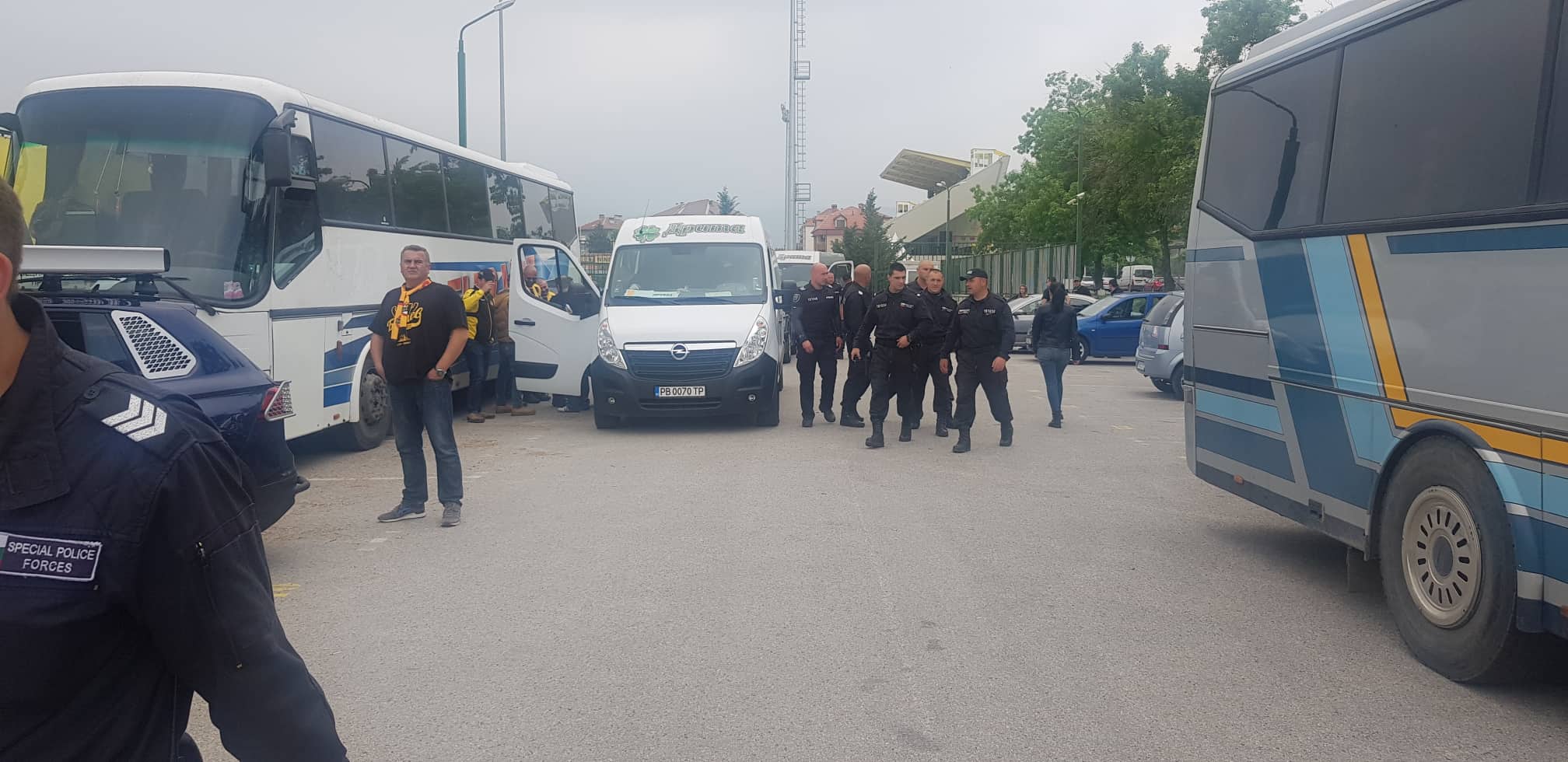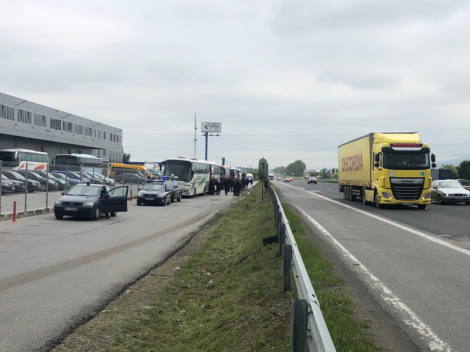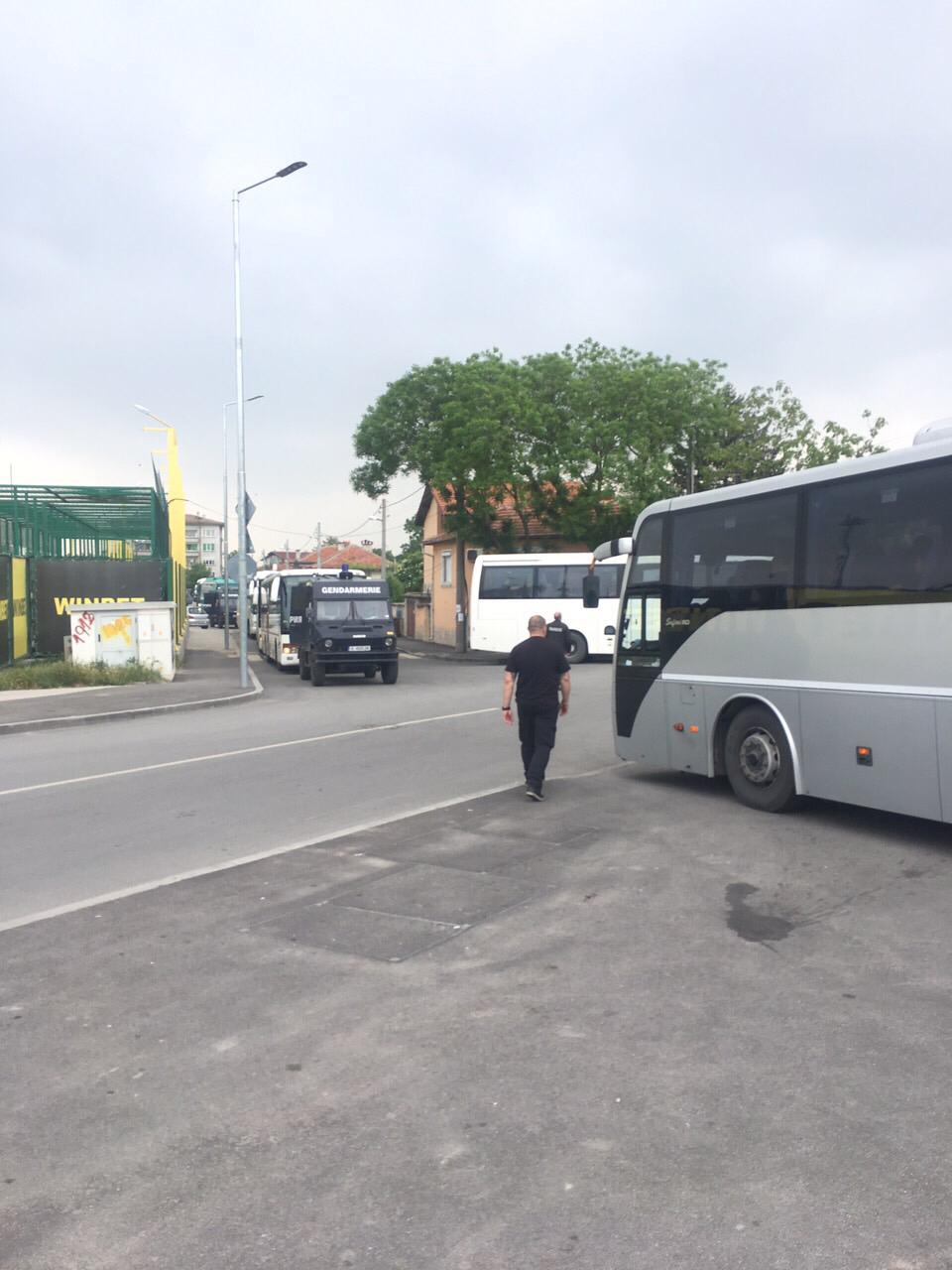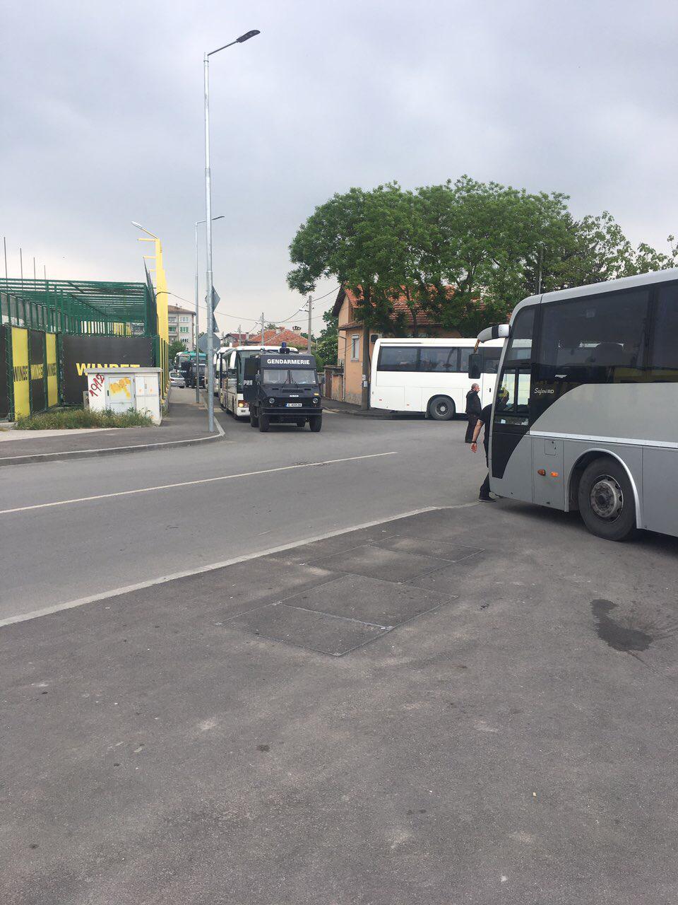 Други фенове, пътуващи с пет автобуса, пък в момента са спрени на входа на столицата и са проверяват от органите на реда, видя PlovdivDerby.com.